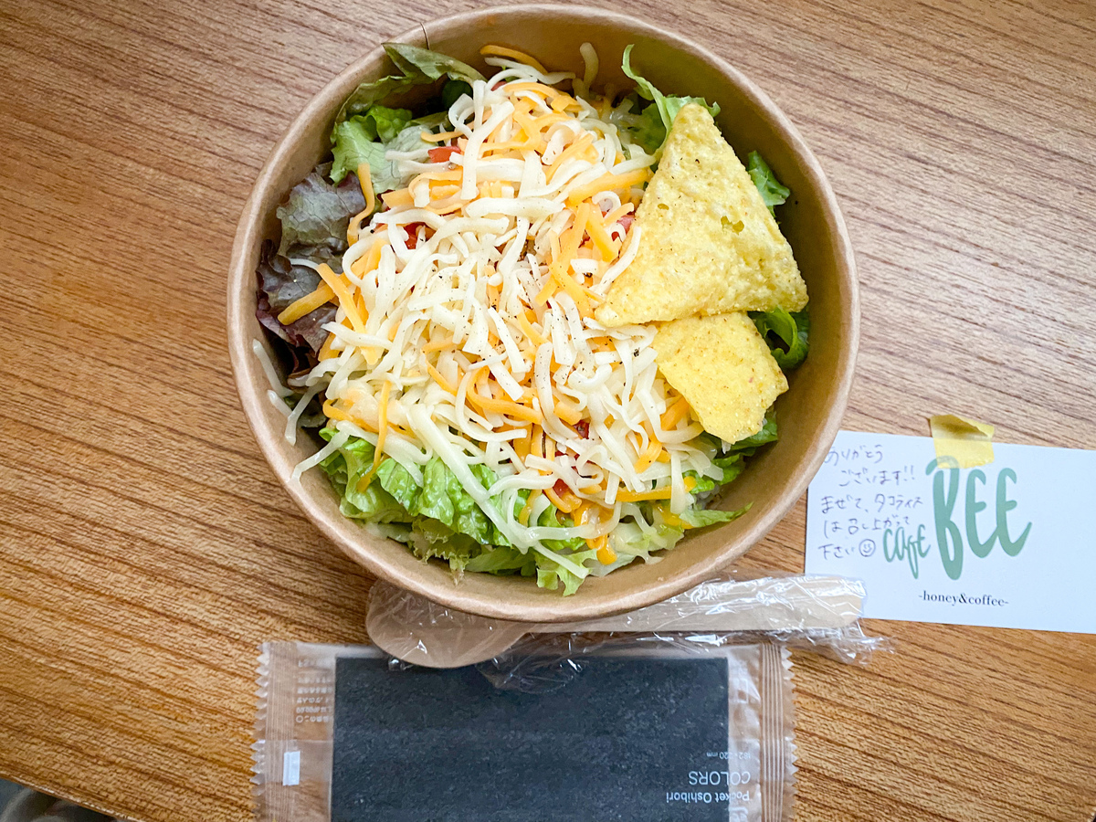 シャキシャキのレタスに、スパイシーでほんのりピリ辛なタコミートが美味しい。