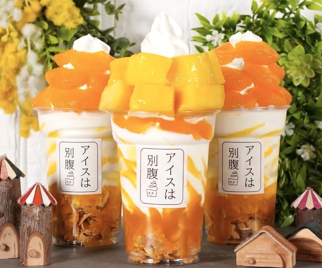 沼津港店でも、姫路本店で人気のメニューを幅広く提供する。マンゴーが山のようにトッピングされた「盛りすぎマンゴー(750円)」、表面をキャラメリゼした濃厚カスタードクリームをたっぷり入れた「クレームブリュレ(650円)」など、カップパフェは約20種類。そのほか、小腹が空いた時やお子さま用のミニサイズ「こどもあいす(5種、400円~)」や締めパフェとしておすすめのリキュールソースをかけた「大人の深酔いパフェ(4種、780円)」など、様々なシチュエーションで夜パフェを楽しめる。季節の素材を使った限定商品も登場予定という。