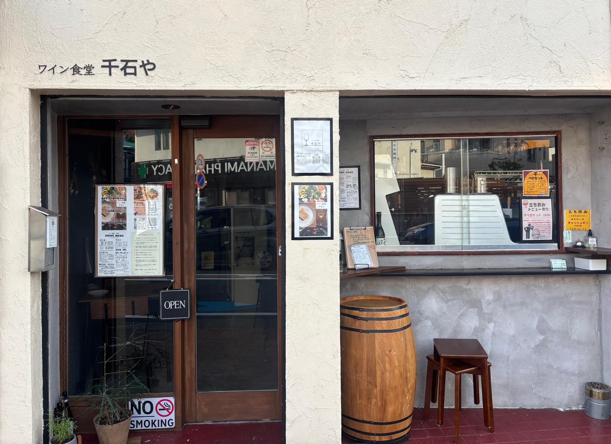 お手頃な割にこだわりがぎゅっと詰まったワイン食堂、千石や。店内は4名と2名のテーブル席と、カウンター席のこじんまりとしたお店です。早めの時間帯ならちょい飲みもできますが、いつも地元のお客さんで賑わっているので、予約してから行くのがおすすめ。女性の一人飲みも大歓迎とのこと(筆者もよく一人飲みしています)。