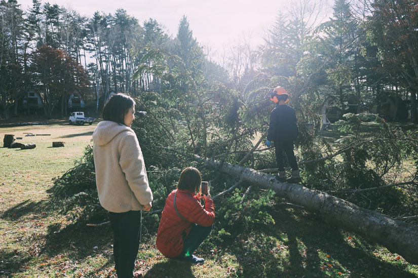 施設管理の一環として行われる樹木伐採の見学、その樹木を使ったアロマミストの蒸留体験、サンタを作るグリーンウッドワーク体験、焚き火体験ができます。半径30km圏内の生産者による野菜・お菓子・ドリンクのマーケットも行われます。