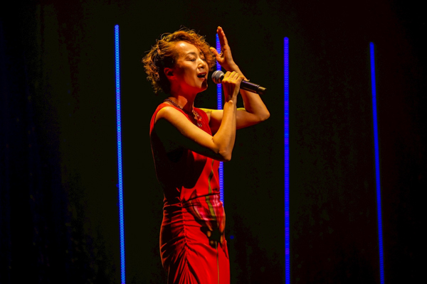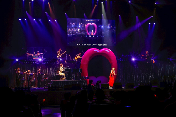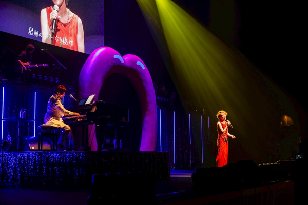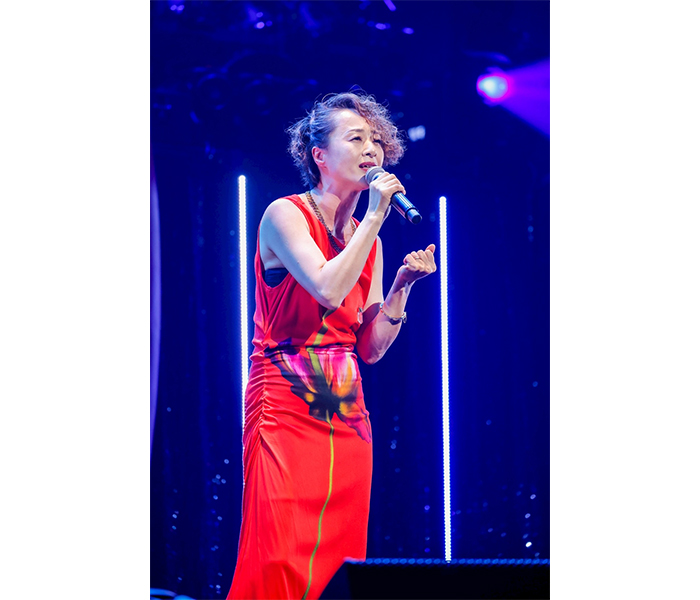 胸に手を当て深く一礼をしてステージに立った歌心りえが披露したのは、さだまさしのカバー『道化師のソネット』。歌番組で披露し、51歳にしてメジャーデビューのきっかけとなった同曲を、Kohmiバンドの生演奏で客席に届けた。