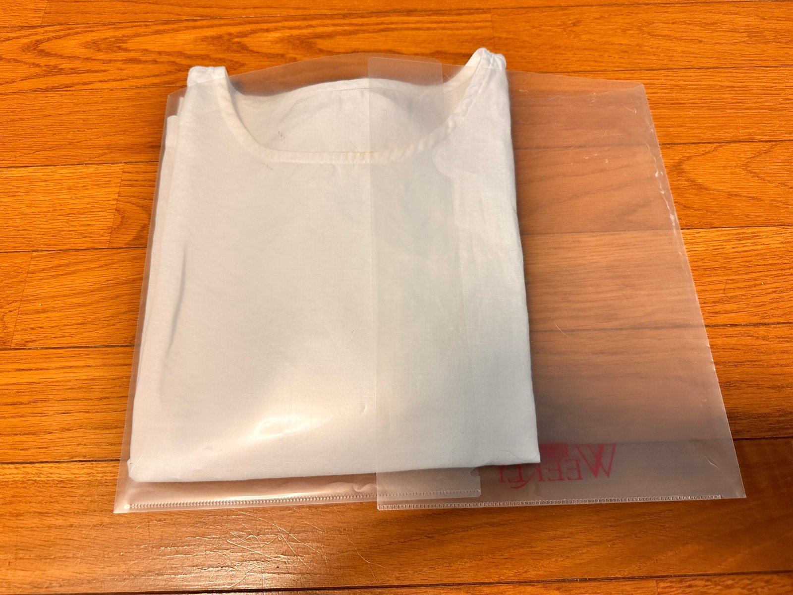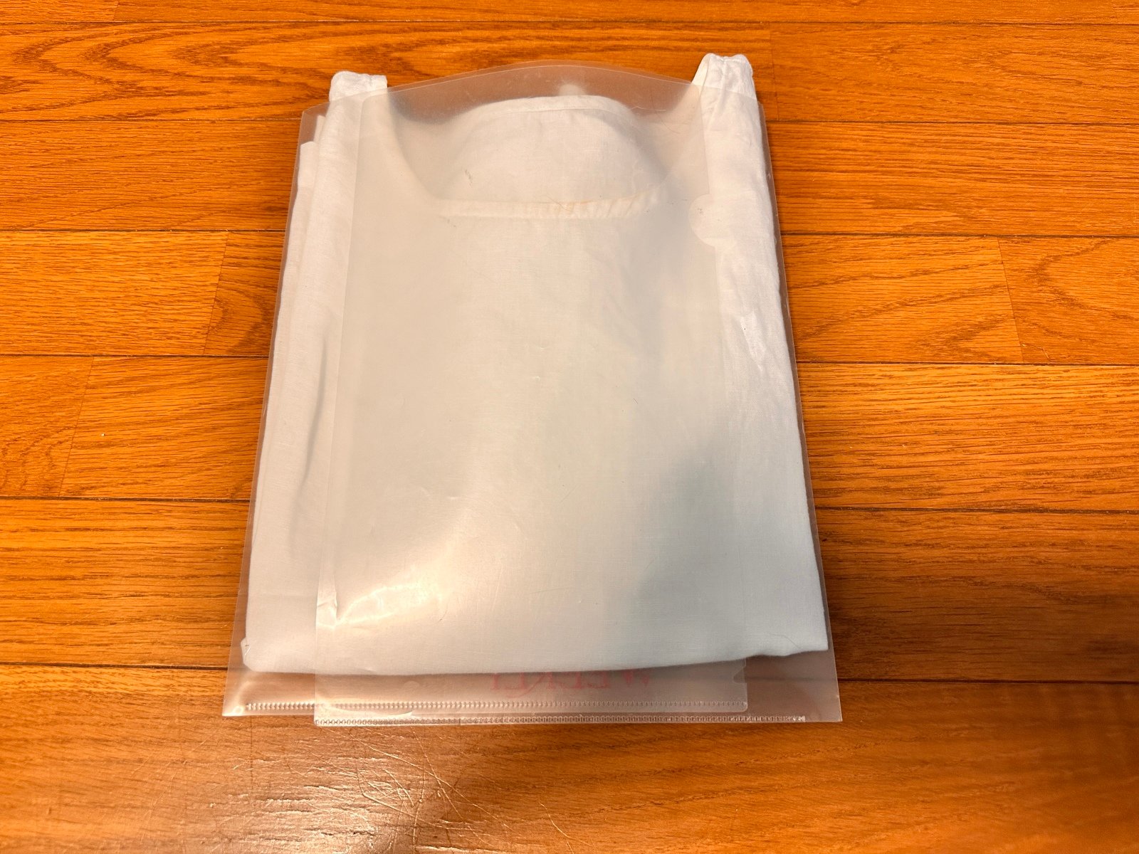 一枚のクリアファイルで挟んだだけでは服がはみ出してしまうので、別のクリアファイルではみ出た部分を反対側から覆います。