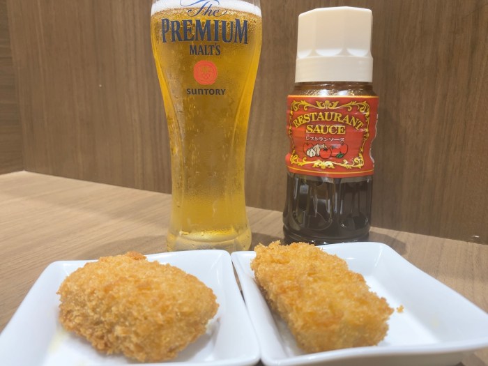 1個154円なので2個注文して合計968円。落ち着いた店内でコロッケとビールのみの注文は少し恥ずかしかったが、プレモルというのもあって贅沢な一時を過ごすことができた」