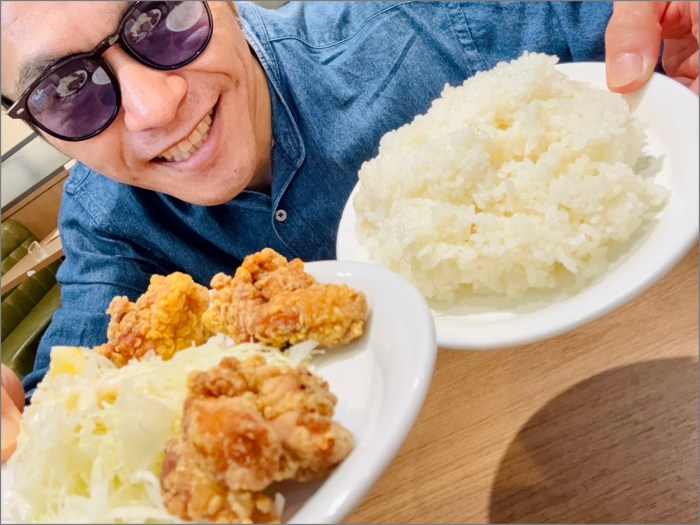 今回の予算は1000円。大盛りライスは必須として、唐揚げ、エビフライ、アジフライ……と、おかずはこの3択になるだろう。結局、最も慣れ親しんだ「デニーズの唐揚げ」を選択。あの頃を懐かしみながら」