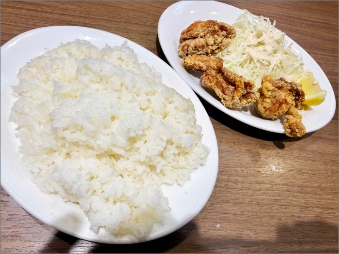 続いてよく我々が注文していたのは、「ライス大盛り」と、何かしらのおかず。「ベーコンとほうれん草」や「唐揚げ」が多かった。おかずよりも、大盛りのメシで腹を膨らませる……みたいな食べ方だ。