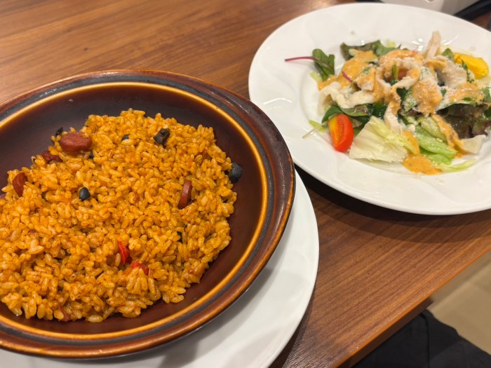 今回のメインはデニーズの元祖メニュー、ジャンバラヤ。消えても復活する根強い人気メニュー。そしてデニーズ以外だとなかなか食べられないメニューでもある。思った以上にピリ辛な味わいに、594円の安さ。