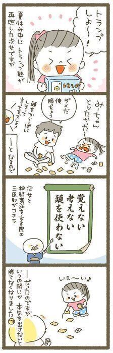 遊び方がわかったのか? コツをつかんだのか? 一度めくったカードの数字をちゃんと覚えるようになり、私が何気なくめくったカードを見逃さず、しっかりペアを成立させられるようになったのです。