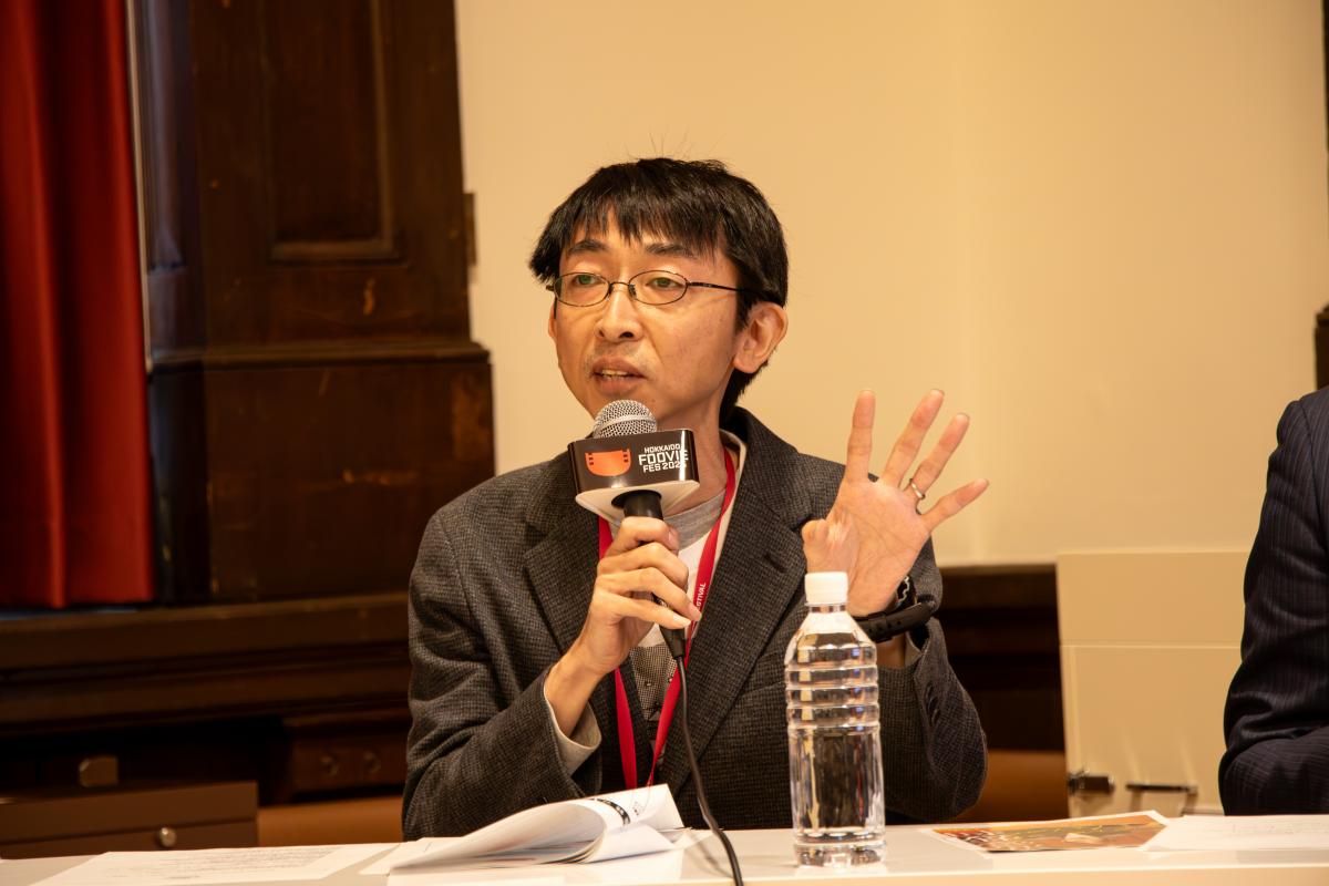 司会の矢武氏の「映画祭を行う上で1番大切にしていることは?」という問いに伊藤委員長は、特に重視するのが「気軽に楽しめる場」であることだと語ります。「地域住民も気軽に参加できることを意識し、北海道で制作された新作映画や人材育成に関わる作品を紹介するなど、地域連携にも力を入れています」と述べました。一方、コンペティションについては「作品数や審査員、優秀賞の特典など課題が多く、目的を明確にして関係者と議論することが重要です」と強調しました。