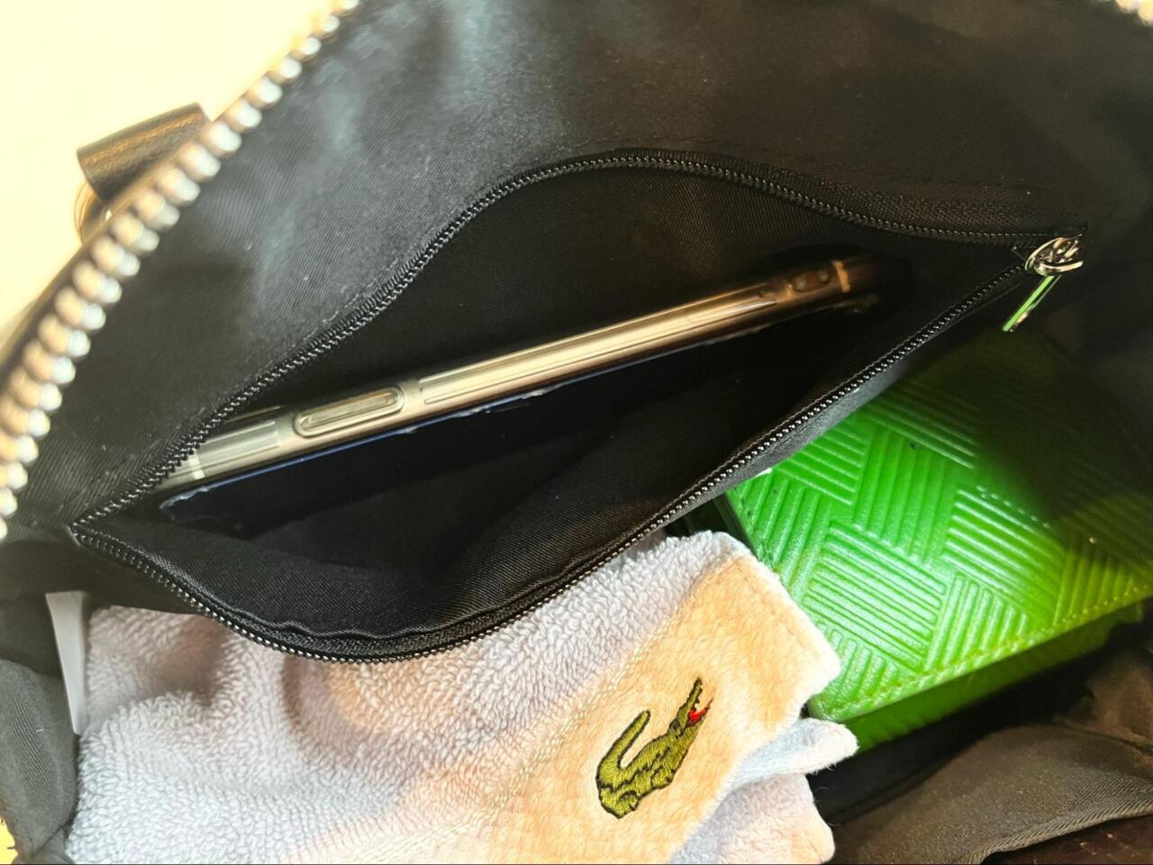 実際に荷物を入れてみると、なんと500mlの水筒がスッと収まりました!見た目はとてもコンパクトなのに、この収納力には本当に驚き…。財布やスマホ、鍵やハンカチなど外出時の必需品は余裕で入りました!