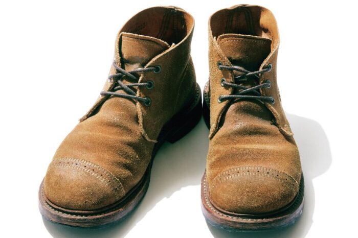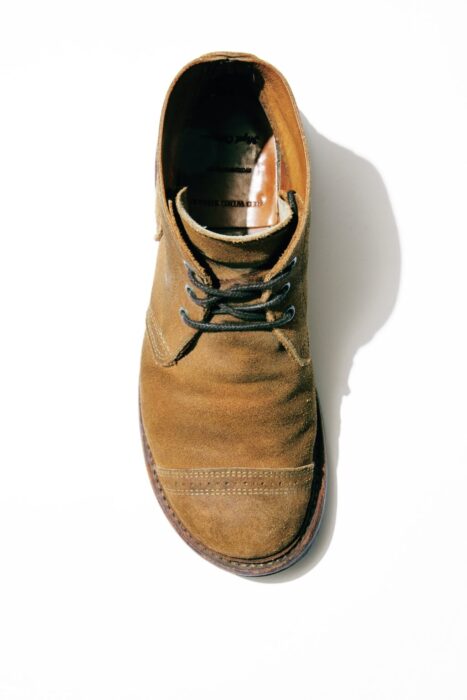 「当時は黒が欲しかったんですが、すぐに売り切れてしまい、スウェードを買いました。でも今となってはこの色で良かったです。ナイジェルらしい英国靴のデザインを、アメリカで仕上げるという米英のタッグはグッと心に響きました。マンソンラストを採用し、幅広い足型に対応するつくりも秀逸で、重厚でありながら履き心地は快適。軍パンはもちろん、スラックスに合わせても不思議と馴染むなど、コーディネートの幅も広く、実用性も含めて私の中でこのコラボは唯一無二の存在です」