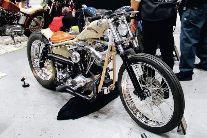 昨年のニューオーダーで1位を獲得した「インフィニティ」のショベル。いにしえのレーサーを彷彿とさせる雰囲気ながら、恐ろしいほどにスリム&コンパクトなボバーに仕上げた。