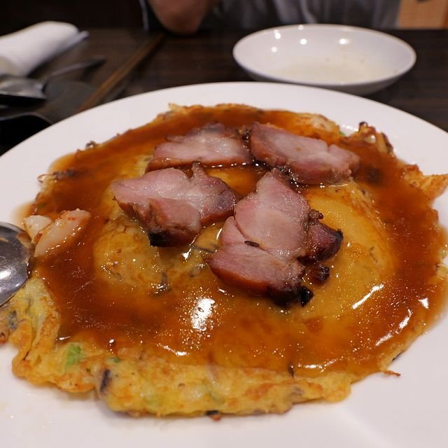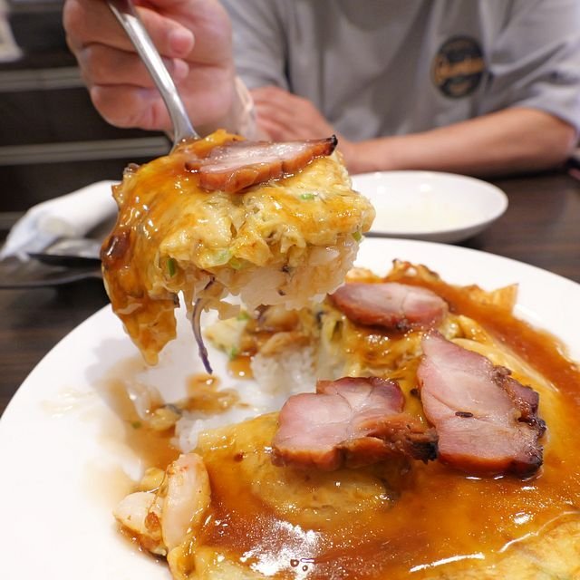 更にAセットの「自家製香港チャーシュー玉子ご飯」が登場。ま、丼物なのですが、白ご飯の上に海老入り玉子焼が乗っかっていて、広東風とろみ餡(あまり甘くないもの)がでろりんとかかり、上に香港式チャーシュー(正式に「焼味(シュウメイ)」と呼びたい肉質がギュッと締まったもの)が乗っけてある趣向。
