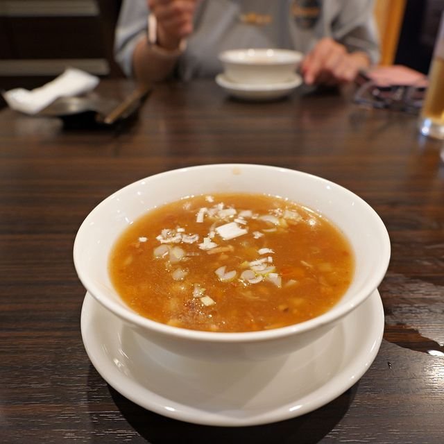 うわー、これはいきなり美味しいよ!とビックリしたスープが登場。ジャガイモとカボチャの角切り、刻み白ネギなどが入っている優しい味わいで、トロミがあるオイスターソース&中国醤油系な旨さなのですが、もっと複雑かつまろやか。いやー表現力が付いて行かないのですが、超旨いです。