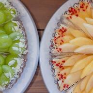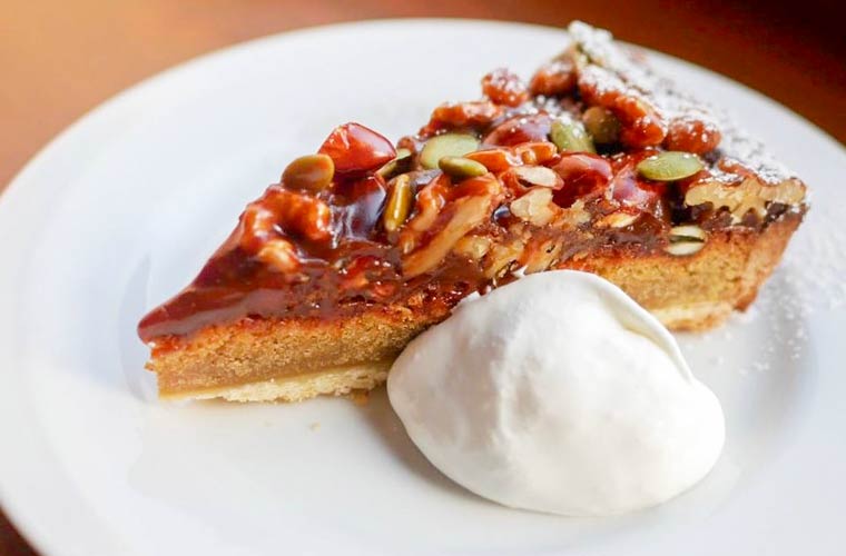 香ばしくローストしたクルミやアーモンドをたっぷりのせた『コーヒーとナッツのタルト』。濃厚なキャラメルとナッツの香ばしさが重なり合い、しっとりとしたタルト生地の甘みを引き立てます。ほどよい苦味のコーヒーがアクセント。甘さの中に深みを感じる上品な味わい。自家焙煎コーヒーとの相性も抜群で、カフェタイムを贅沢に彩る一品です。