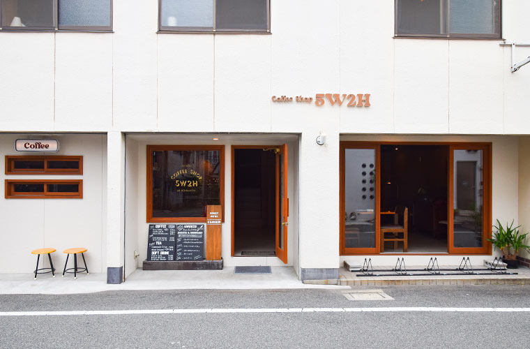 JR・山陽姫路駅から北へ徒歩約10分、「姫路城」近くの静かな路地にひっそりと佇む「5W2H(ゴダブルニエイチ)」。お溝筋商店街の老舗カフェ「チャルマ」の2号店で、自家焙煎コーヒーとスイーツを楽しめるオシャレなカフェです。