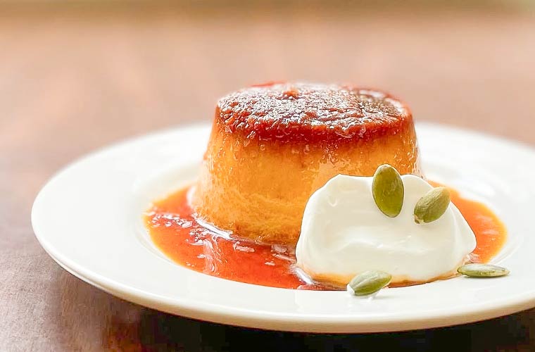 昔ながらの喫茶店を思わせる“固め”の食感が魅力の『パンプキンプディング』。カボチャ本来の自然な甘みをいかし、ほろ苦いカラメルソースが全体を引き締めます。濃厚でありながら重たすぎず、口の中でとろけるようななめらかさ。素朴ながら上品な味わいは、秋の訪れを感じさせるデザートです。