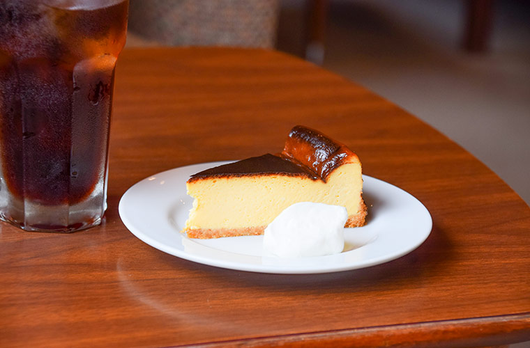 日替わりのスイーツも店頭に並び、この日はクリームチーズと卵をたっぷり使った贅沢な『オールドバスクチーズケーキ』が登場。高温かつ短時間で焼くことで、とろりとした口当たりに仕上げています。しっかり焦がした表面の、ほろ苦いカラメルのような味わいとのコントラストも秀逸。