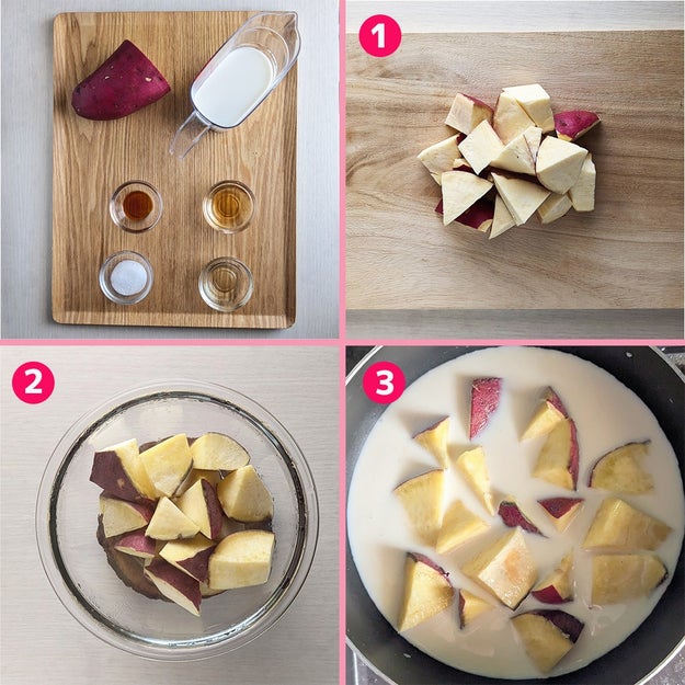 ③ 鍋に②と【A】を入れ、落としぶたをして弱めの中火で5〜7分煮る。さつまいもに火が通ったら、完成!