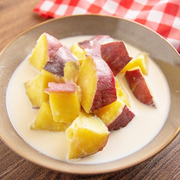 食べるとほっとする「さつまいものやさしいミルク煮」は、やわらかい甘さがふんわり広がる穏やかな一皿です。さつまいもの香りと自然な甘みが牛乳にすっとなじみ、あと口までやさしい印象が続きます。白だしをほんの少し加えることで甘さが引き締まり、全体の味がすっきりまとまります。ぜひ、作ってみてくださいね♪