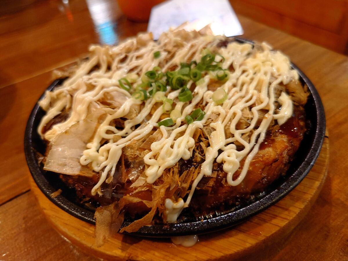山芋たっぷりお好み焼き。500円(550円)。