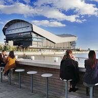 紫川河畔の井筒屋側エリアには、ウッドデッキ周辺を寒色系のイルミネーションとオーガニックボールで装飾。柵には白系のつららイルミネーションを取り付け、光が紫川を取り囲むような演出になっているそうです。