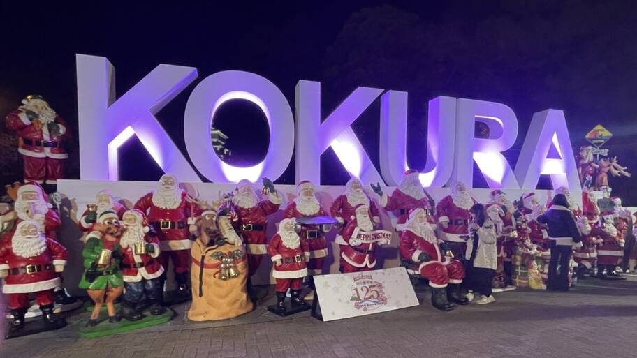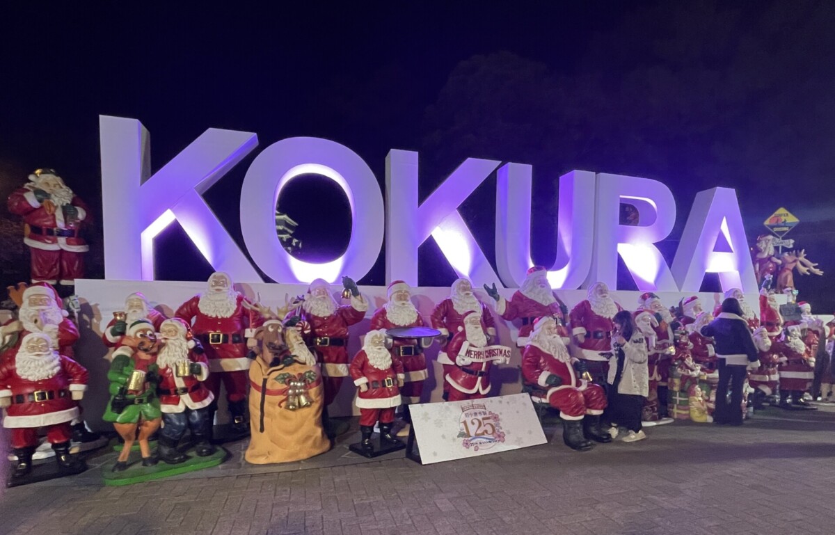 人気のKOKURAモニュメントが復活 たくさんのサンタクロース&小倉城竹あかりコラボ