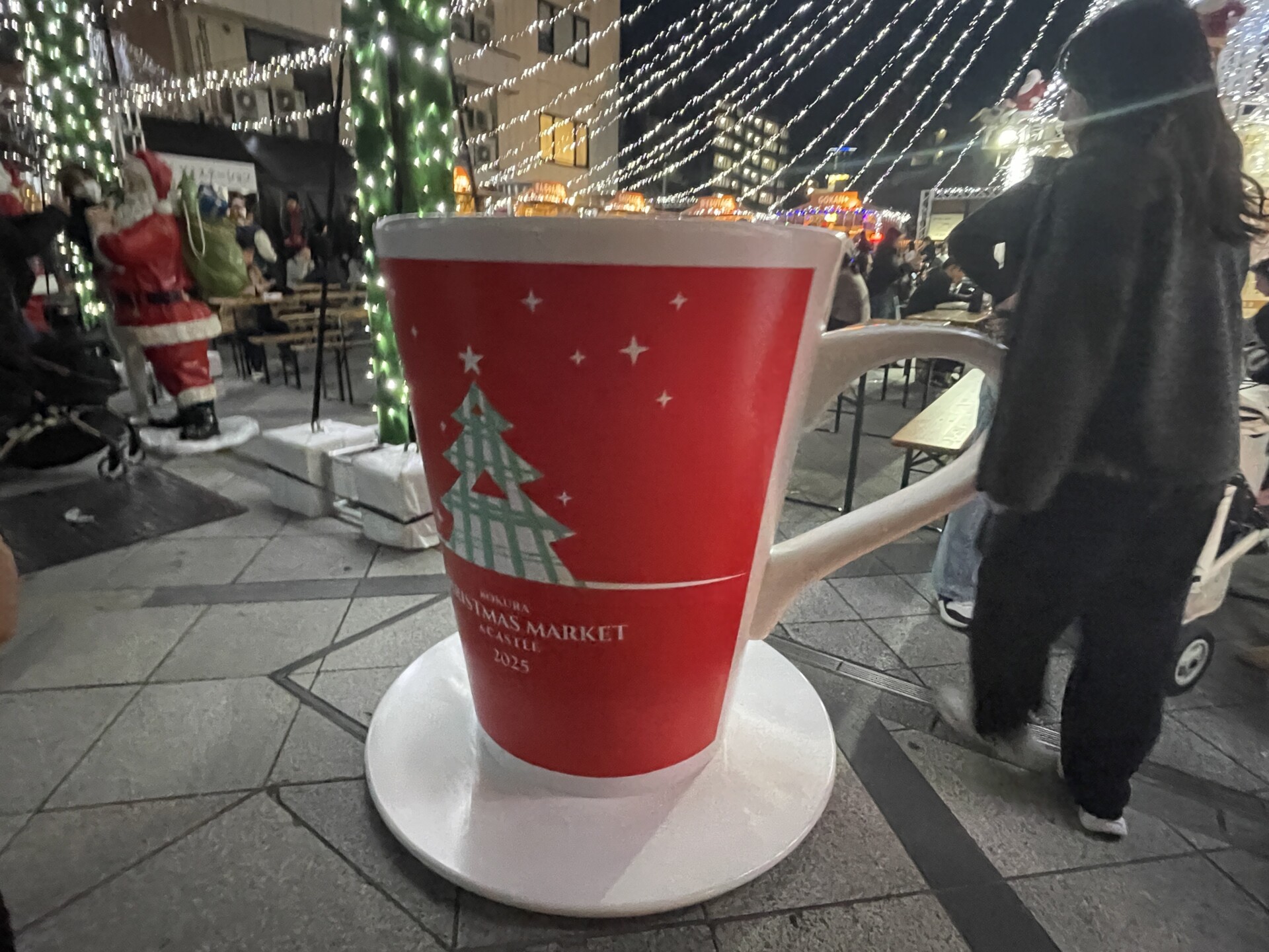 その他にも、小倉クリスマスマーケットの各会場では、大きな限定マグカップが登場し、中に入って取れるフォトスポットになっていました。