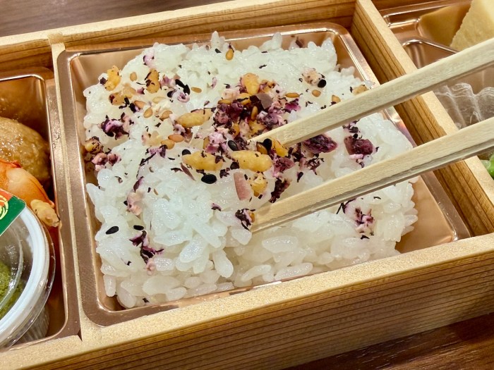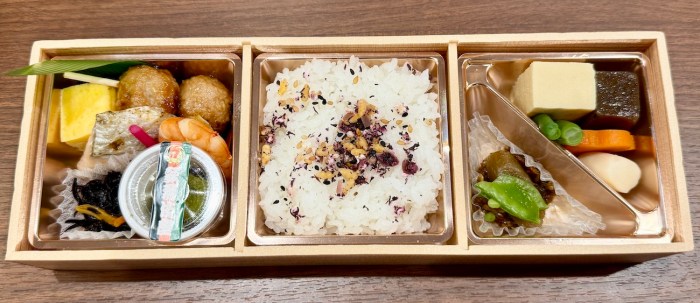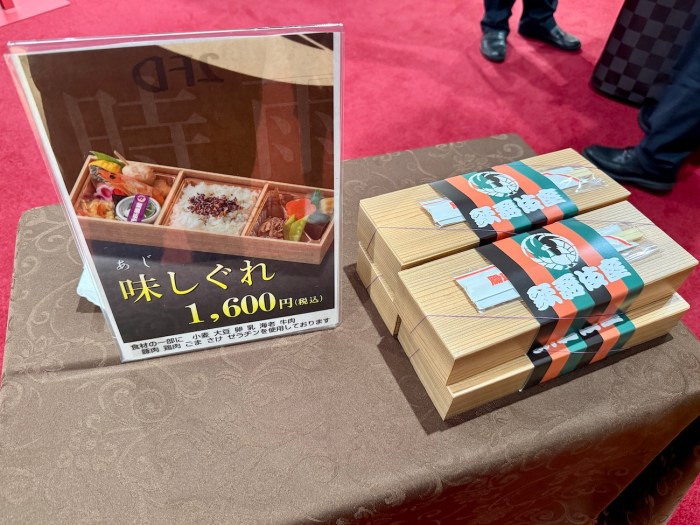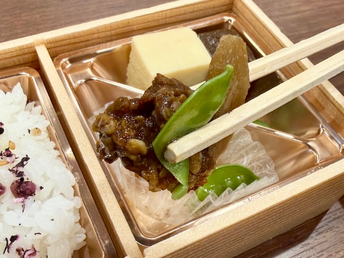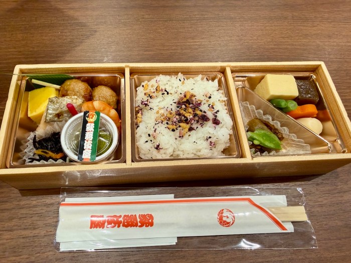 ということで「味しぐれ(1600円)」を購入。お弁当は花籠内でいただけるようだ。ちなみに味しぐれ以外にも、観劇を楽しむ特別な1日にふさわしい豪華なお弁当が色々あるという(事前予約が必要なメニューもあり)。