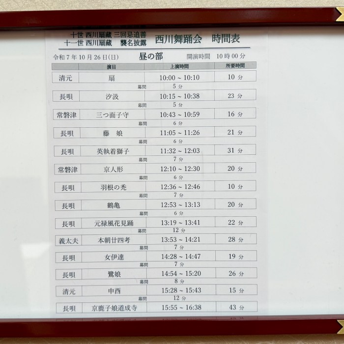 勝手に映画くらい(2〜3時間)とイメージしていたので、「幕間(まくあい):ひと幕終わって次の幕が始まるまでの休憩時間」に時間表を確認してみると……16時半頃までガッツリ楽しめるそうだ。って、まだ半分も終わってないんかい!