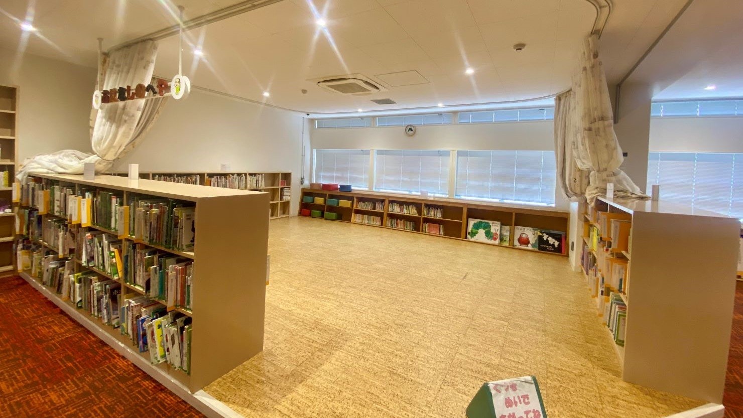 「こどもの本」コーナーの一角には「おはなしのへや」があります。カーテンで仕切ることのできるこちらのコーナーでは、毎週水曜日の15時30分から16時にかけて幼児から小学生とその保護者を対象としたおはなし会が開かれています。年に200回近くも開催されるおはなし会のほか、児童向けの映画会など杉並区立中央図書館が主催するイベントは盛りだくさんです。