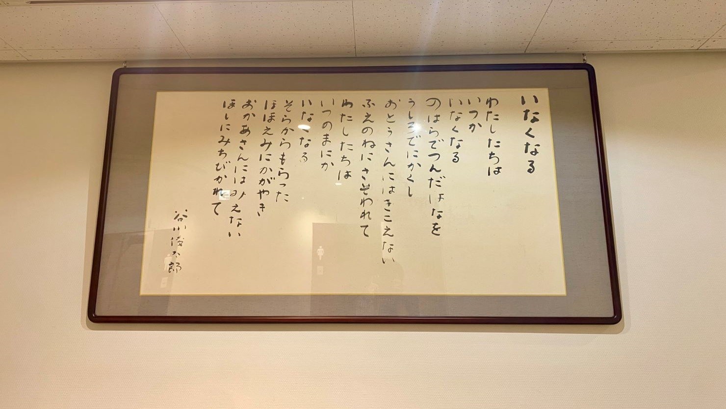 「いなくなる」という詩をしたためたこちらの書は詩人・谷川俊太郎氏から寄贈されたもの。終生にわたって杉並区に暮らした谷川さんの純朴な詩と文字が心に響きます。