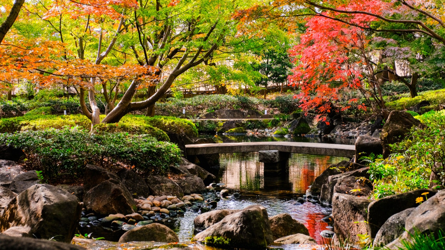 睡蓮の池のある静かな園内。落ち着いた時間を過ごせます