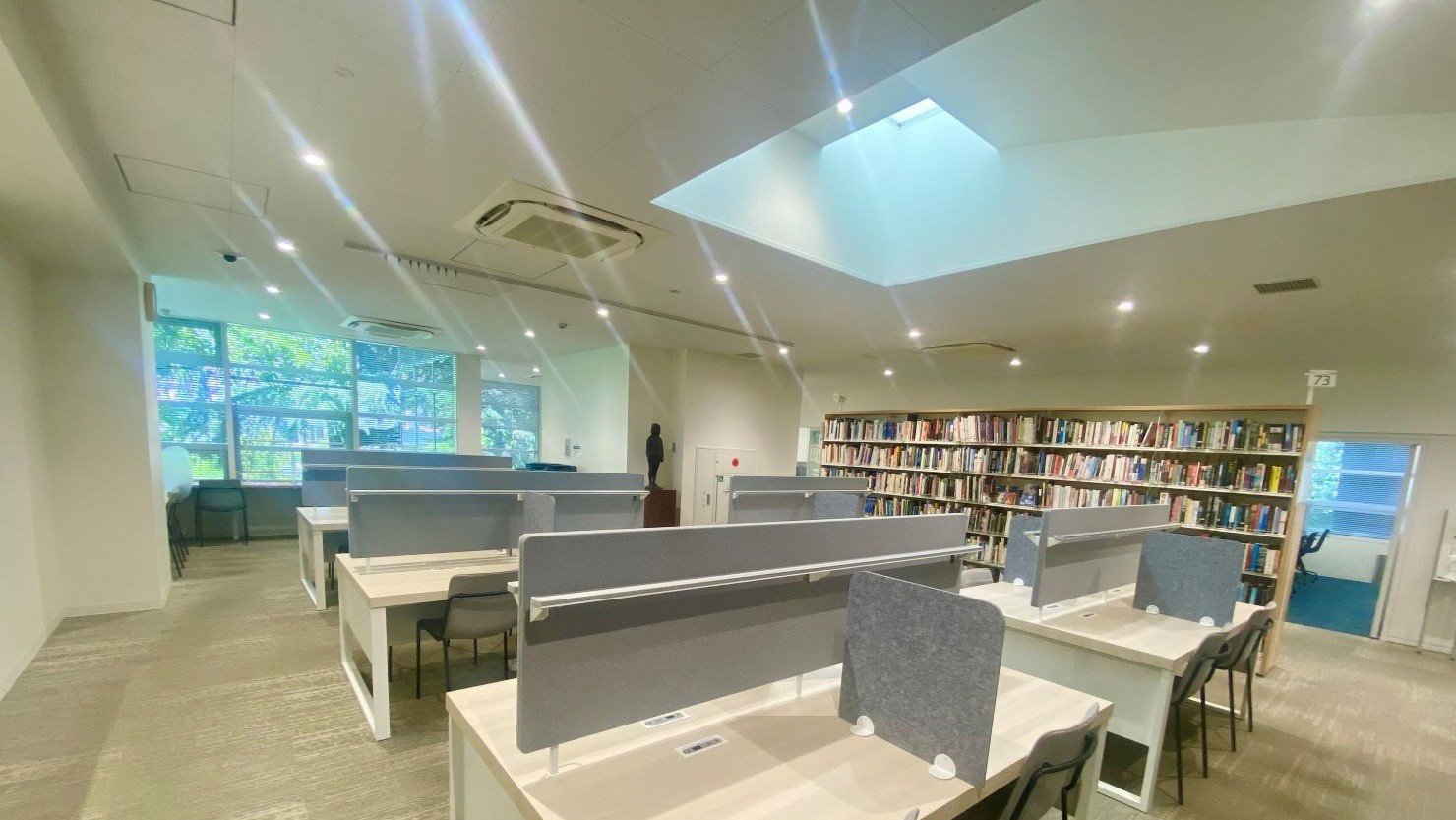 こちらは2階の閲覧コーナーです。光が差し込む天窓が明るく奥行きのある空間をもたらします。