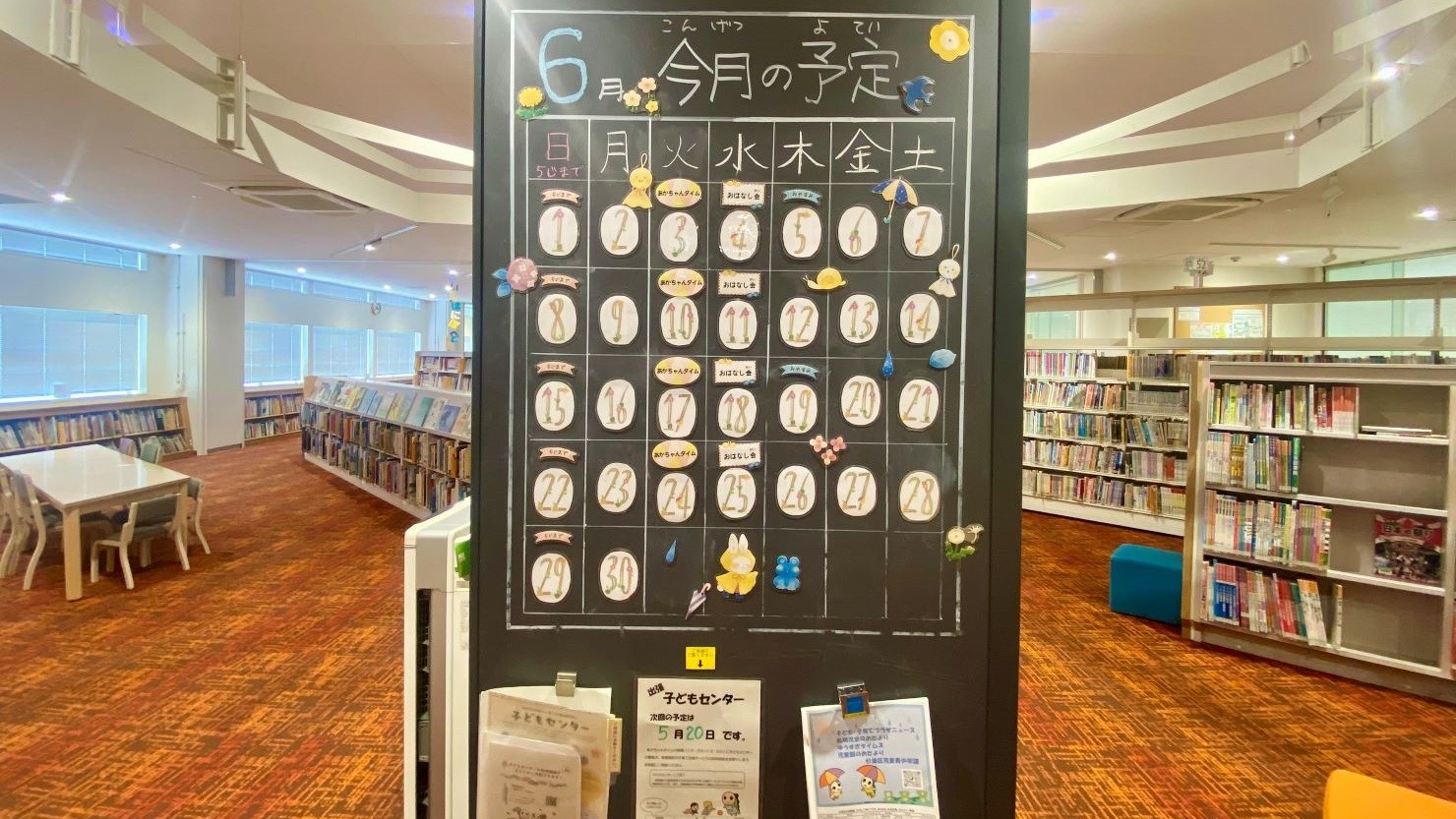 児童向けのイベントの予定は杉並区立図書館のホームページで確認できるほか、室内のカレンダーでもチェックできます。