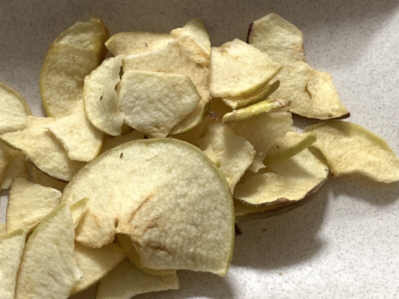 薄いリンゴのスライスがスナックになっています。大きさはまばらです。
