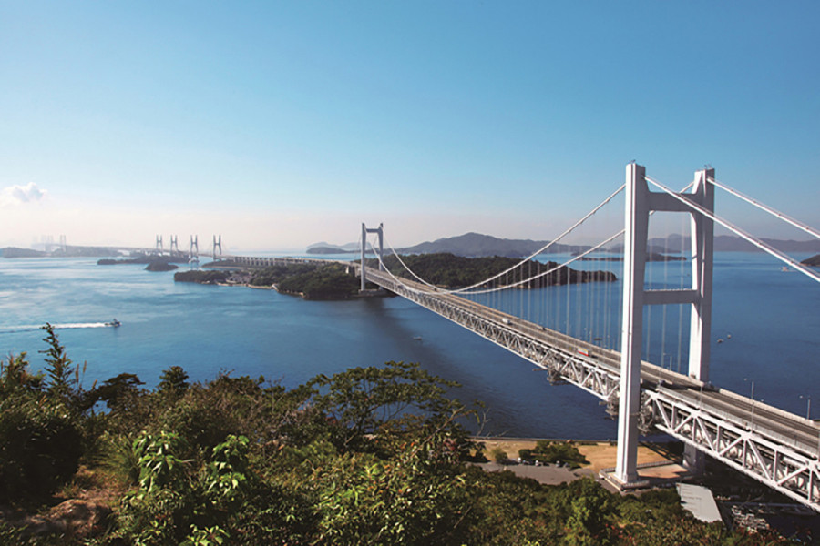 1988年に開通した岡山県と香川県を結ぶ本州四国連絡橋の一つで、世界最大級の道路・鉄道併用橋。鷲羽山展望台から望む四国へつながる一本道は圧巻で、ライトアップされた姿も雄大で美しく必見です。