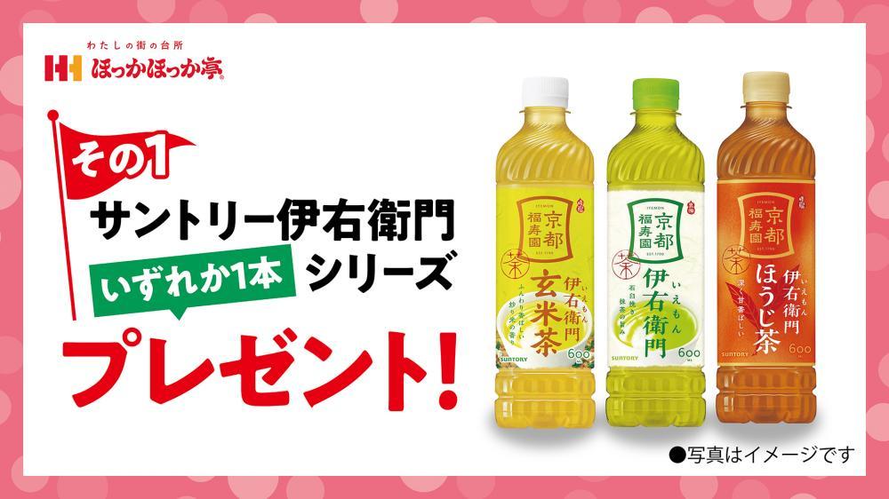 第1弾は、「サントリー伊右衛門シリーズ」プレゼント。「牛すき焼シリーズ」を購入すると、「サントリー伊右衛門シリーズ」をいずれか1本がもらえます。