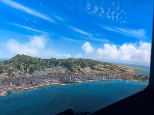 今回のプランでは、ボーイング737MAXに乗り込んで、ハワイのダニエル・K・イノウエ国際空港を離陸し、オアフ島を一周して再び同空港に着陸するルートが体験できます。
