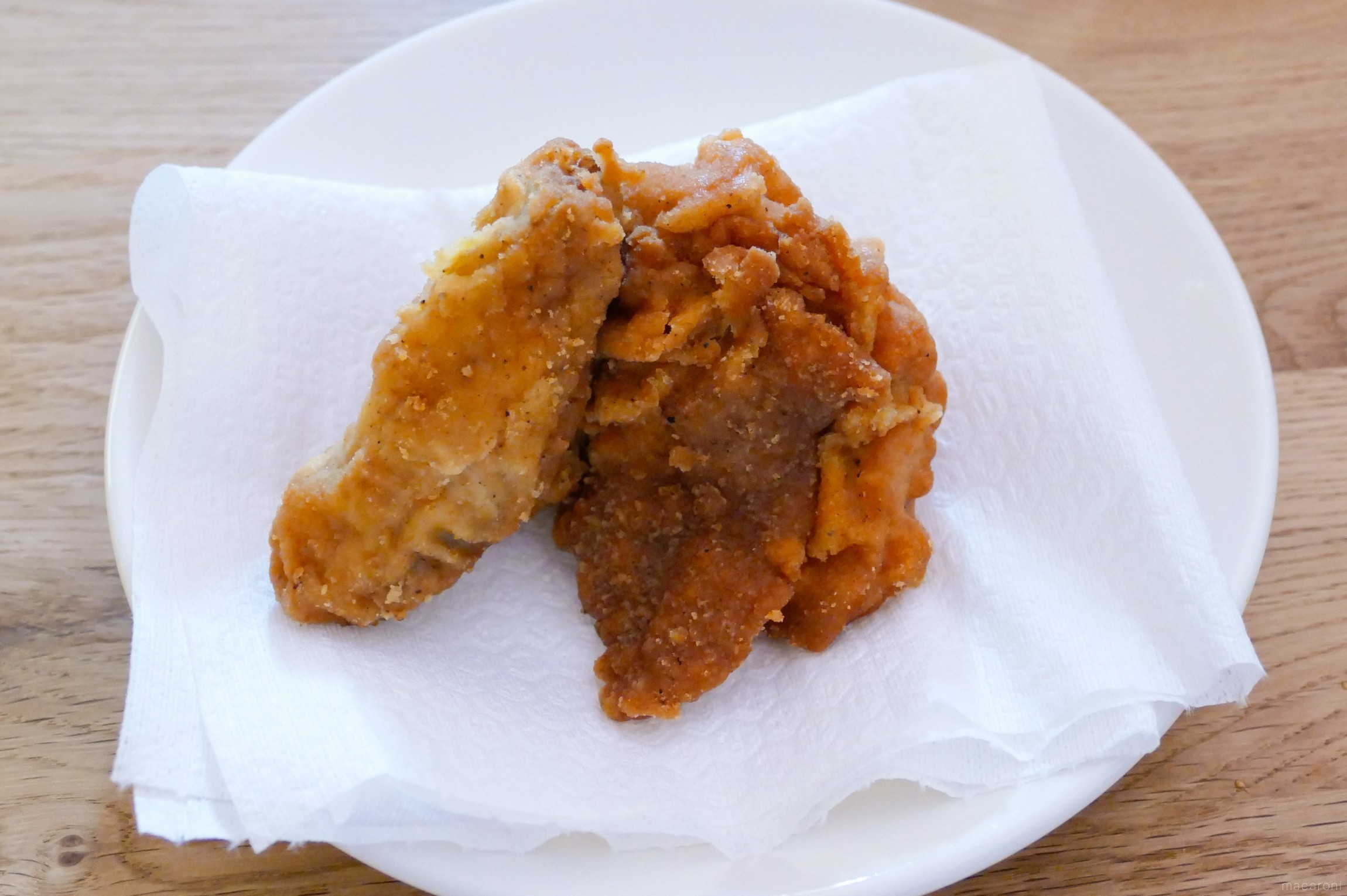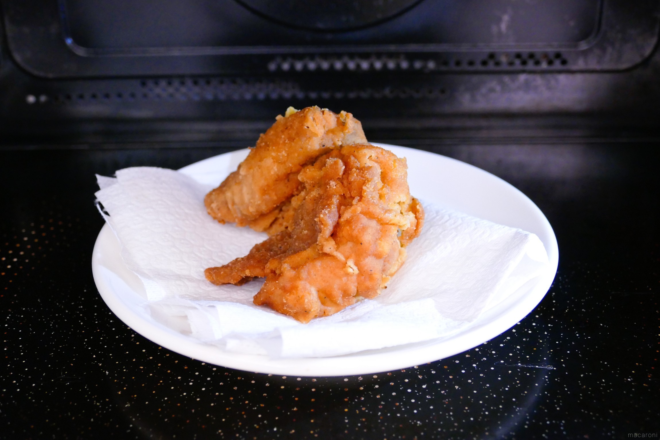 電子レンジを使うと短時間で手軽に温められます。ケンタッキーらしいしんなりやわらかい食感の衣が特徴です。そのまま加熱すると底が油っぽくなってしまうので、クッキングペーパーを敷いて加熱するか、油を拭いてから食べるのがおすすめ。