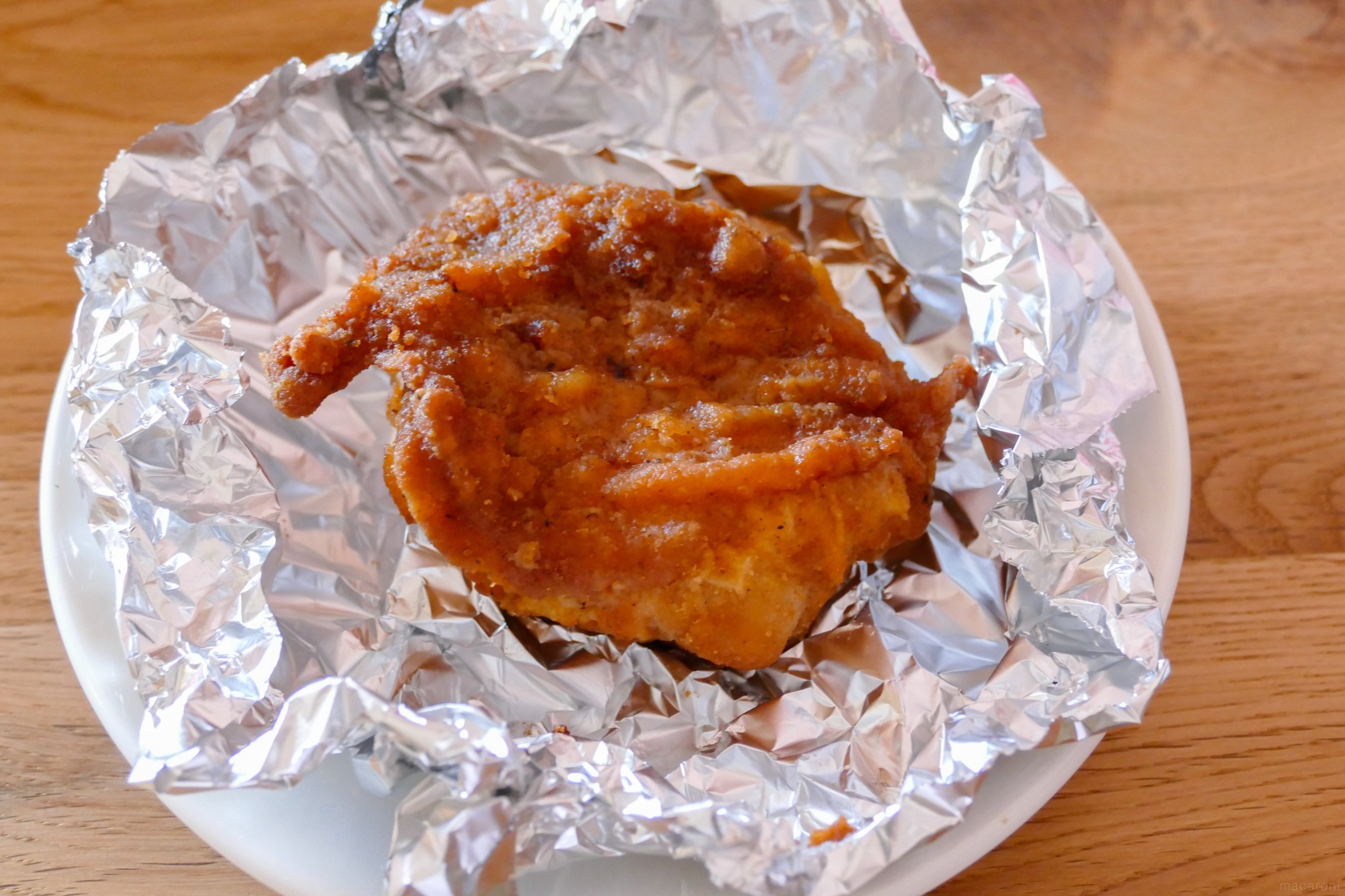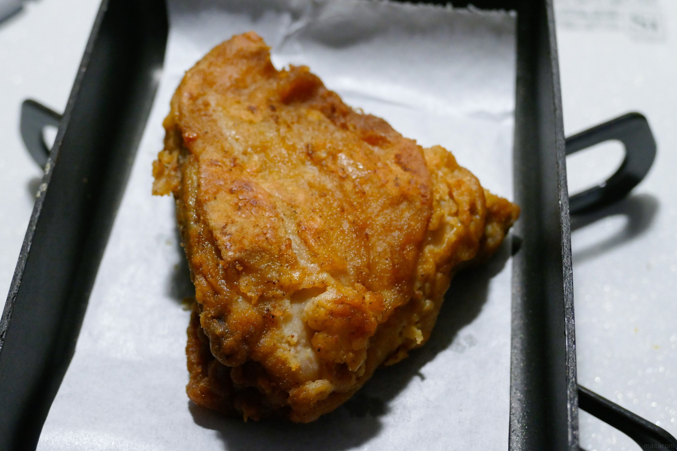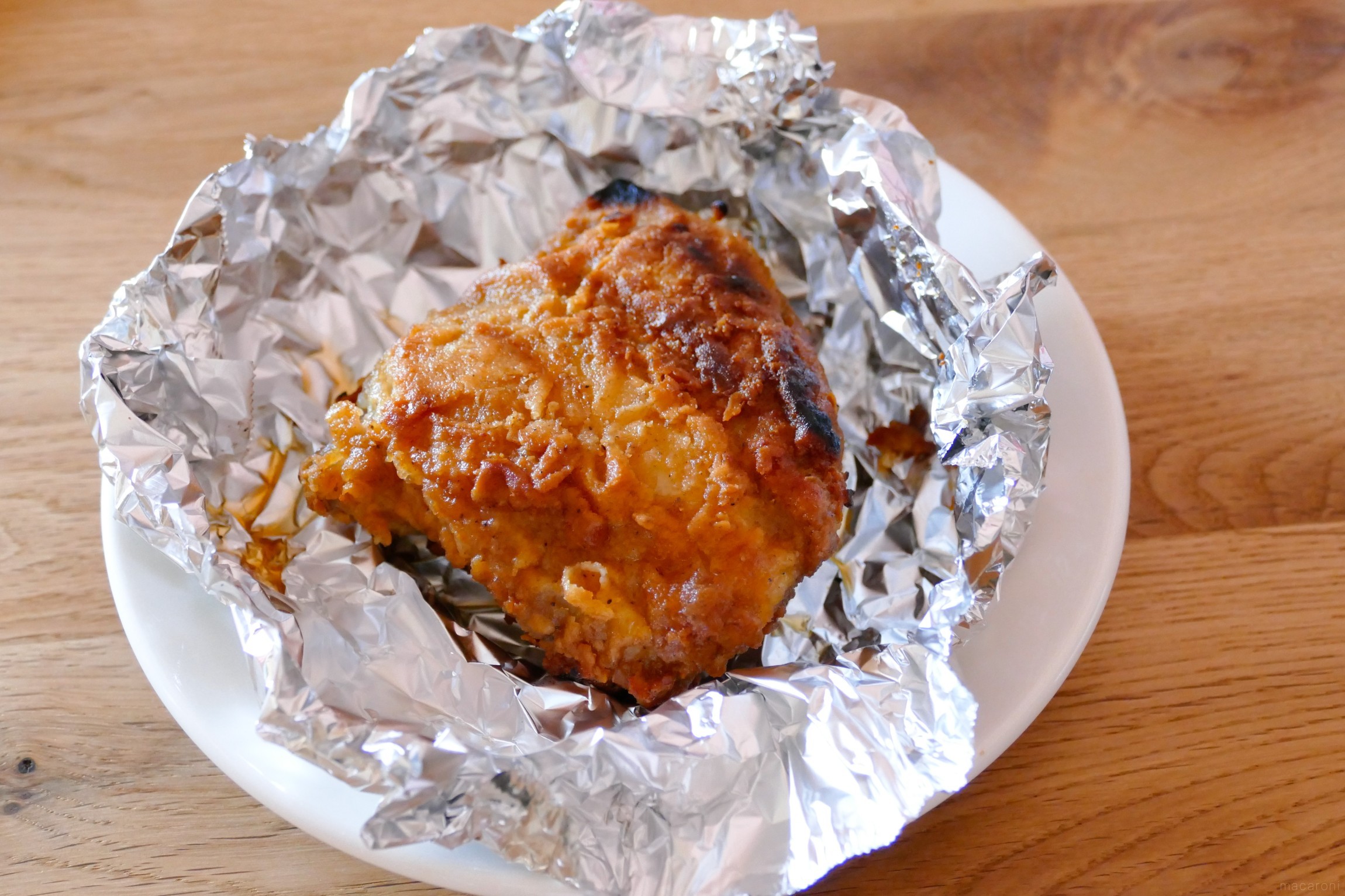 魚焼きグリルで焼くチキンはワイルドなざくざく食感が特徴。ケンタッキーらしさとは異なりますが、香ばしい衣が好きな方におすすめ。熱源がトースターに比べて近いためしっかり焼くことができます。