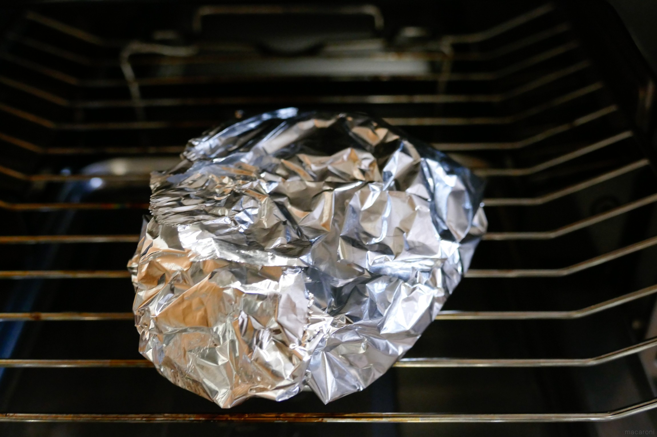 1. チキンをアルミホイルで包む