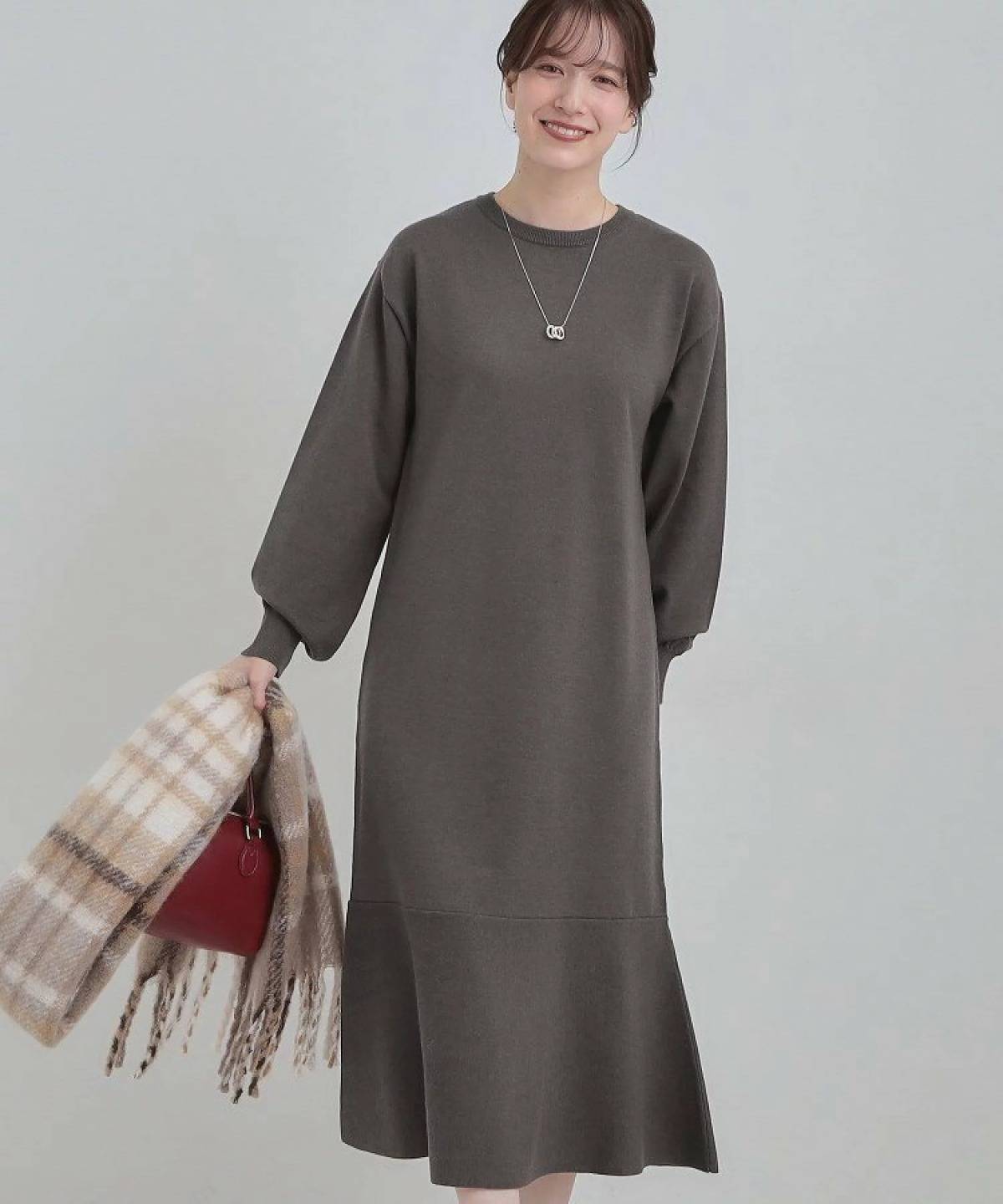 SHOO・LA・RUE スタイルがすっきりに見える 裾マーメニットワンピース