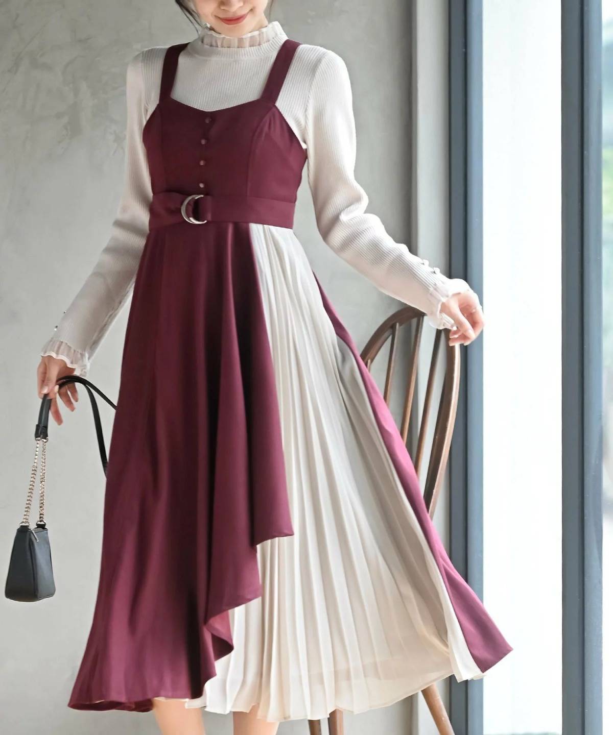サイドプリーツデザインが特徴のこちらのワンピースは、華やかな雰囲気で着映えするので、2025年初冬コーデの主役になってくれます♡