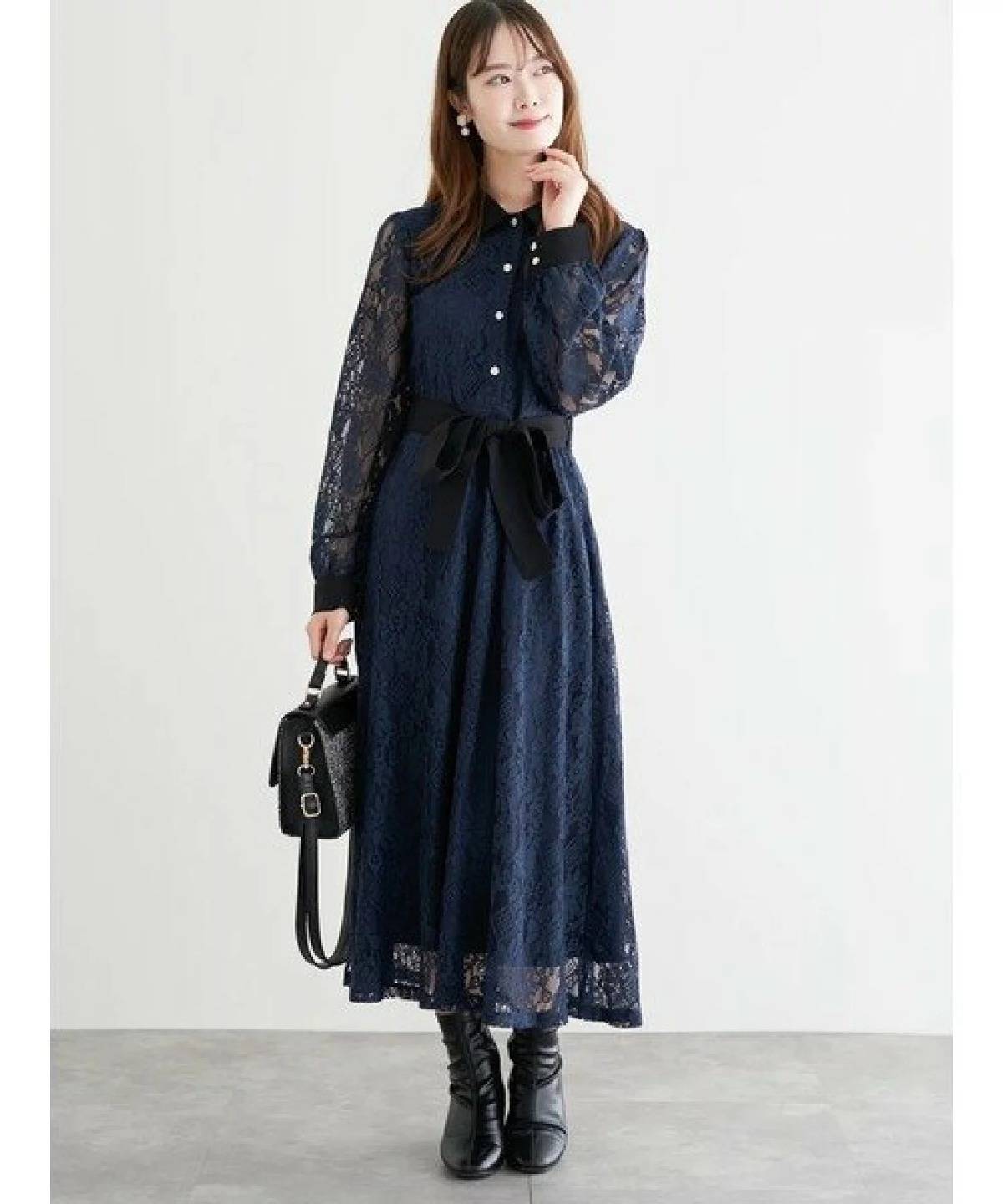 レース生地が使用されたシャツワンピースは、エレガントな雰囲気が魅力♡