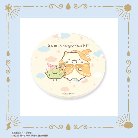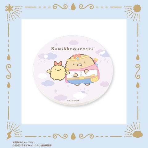 本グッズは、2025年公開の『映画 すみっコぐらし 空の王国とふたりのコ』を記念して企画されました。「すみっコぐらし」映画シリーズの第4弾となる本作では、「空の王国」を舞台に、雨続きのすみっコたちの町に空からやってきた〈おうじ〉と〈おつきのコ〉が新たな物語を紡ぎます。