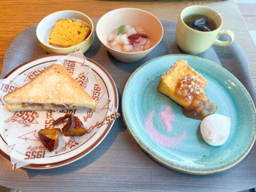 名物のルーベンサンドには、付け合わせとして塩キャラメルスイートポテトが登場。フレンチトーストのソースには、アップルシナモンソースが登場しています。