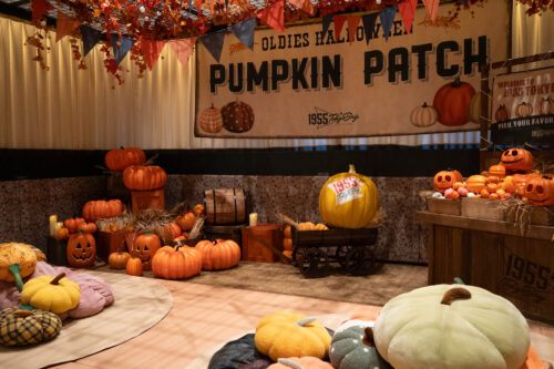 50sファッションでおめかししたジャック・オ・ランタンのフォトロケーションには、座って写真が撮れるベンチも。
