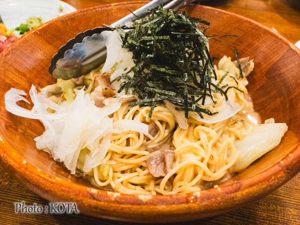 で、この焼きラーメン。「焼き」といっても焼きそばとはまるで異なるテイスト。