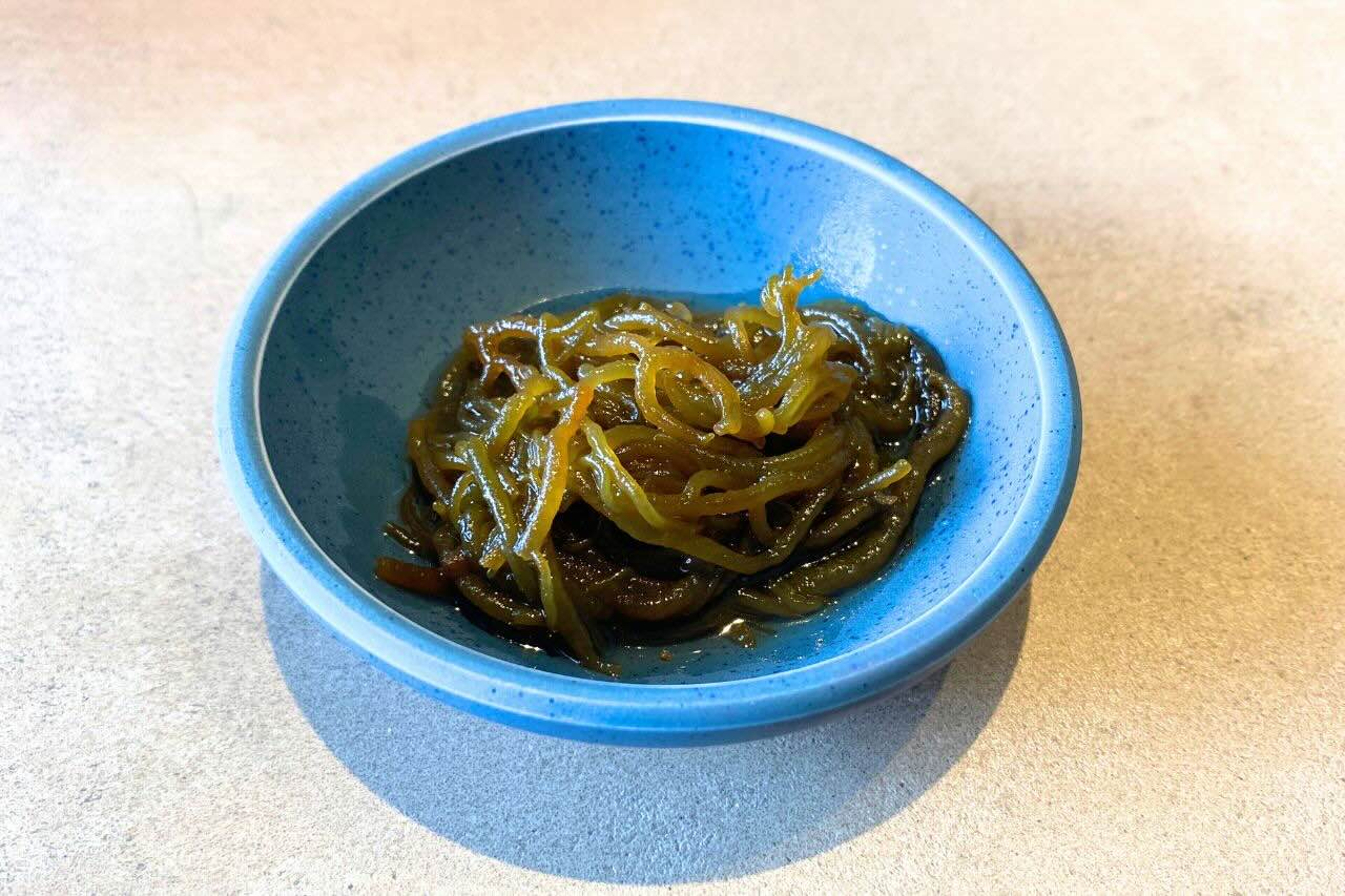 メニューにはうるま市勝連産のもずく酢がサービスでついてきます。もずく屋さんを営む店主自慢のもずくは、帰りにおみやげとして買っていくお客さんも多いんですよ。