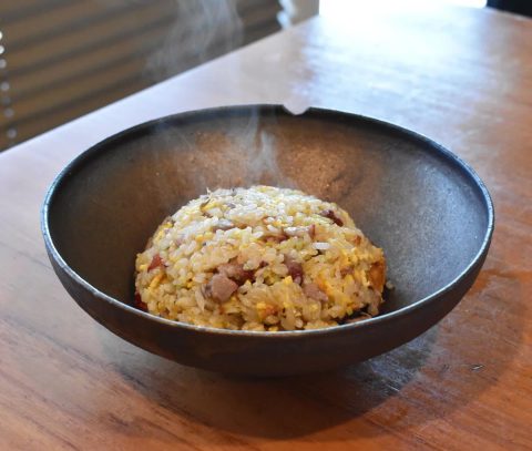 ──ご飯がはふはふ。紅麹のエキゾチックな香りがほんのりしてきて、おいしい。チャーシューはやっぱり「チャーハンの華」ですね!しっとりしていて、噛むとじゅわじゅわ塩味が奥からやって来ます。